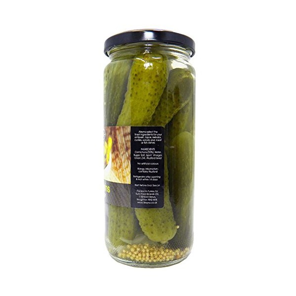 - Contains water, sugar, salt, onions, dill, mustard seeds