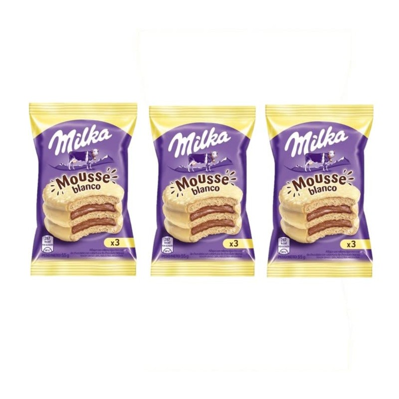 Alfajor filled with mousse covered with white chocolate triple 55g (Alfajor MK triple mousse white (x3))