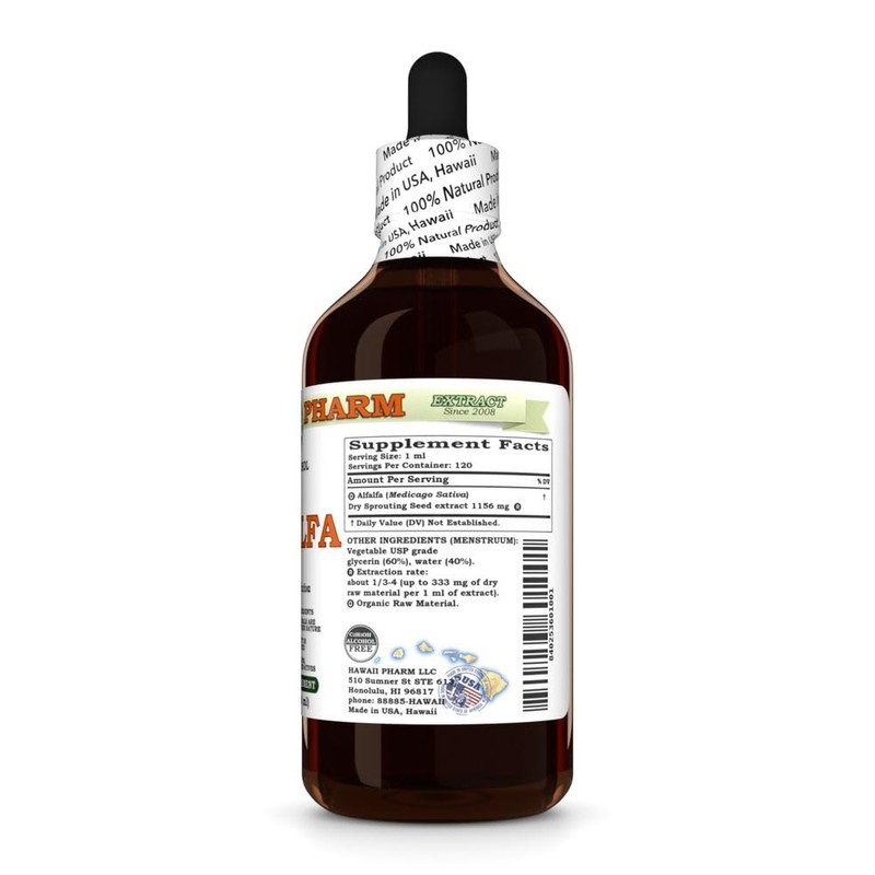 Alfalfa (Medicago Sativa) Dry Sprouting Seed Glycerite, Made in Hawaii, Organic Raw Materials, All Natural, Vegan, Lab Tested Alcohol-Free Liquid Extract - 4 fl.oz