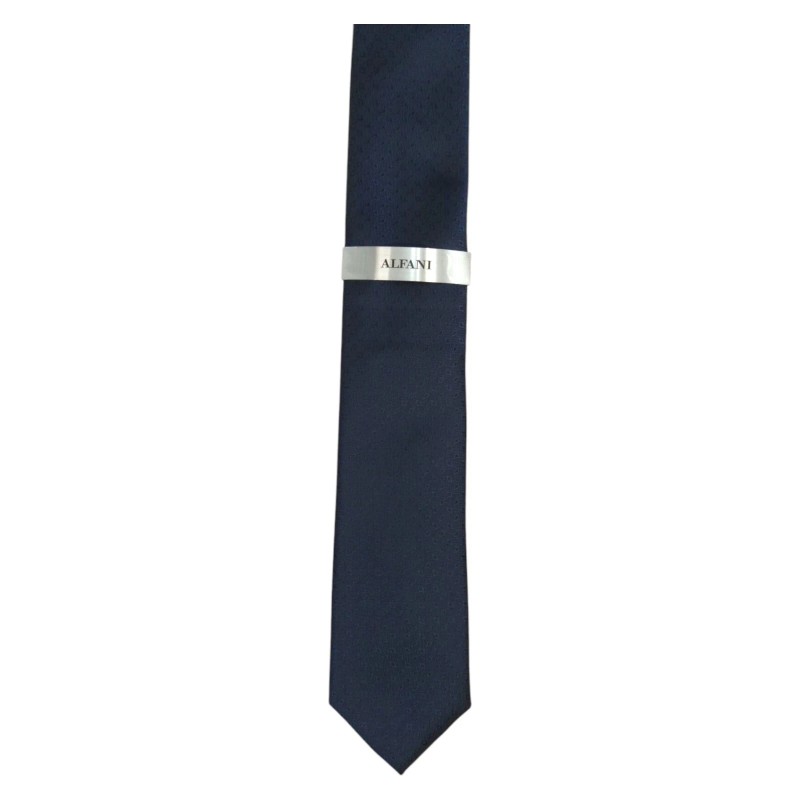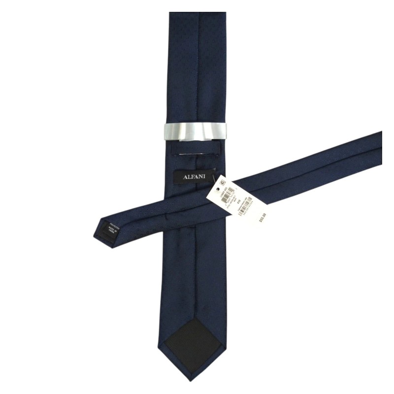 Alfani Men's Navy Blue Slim Tie Solid Geometric Patterned Narrow Modern Dress Fashion Necktie