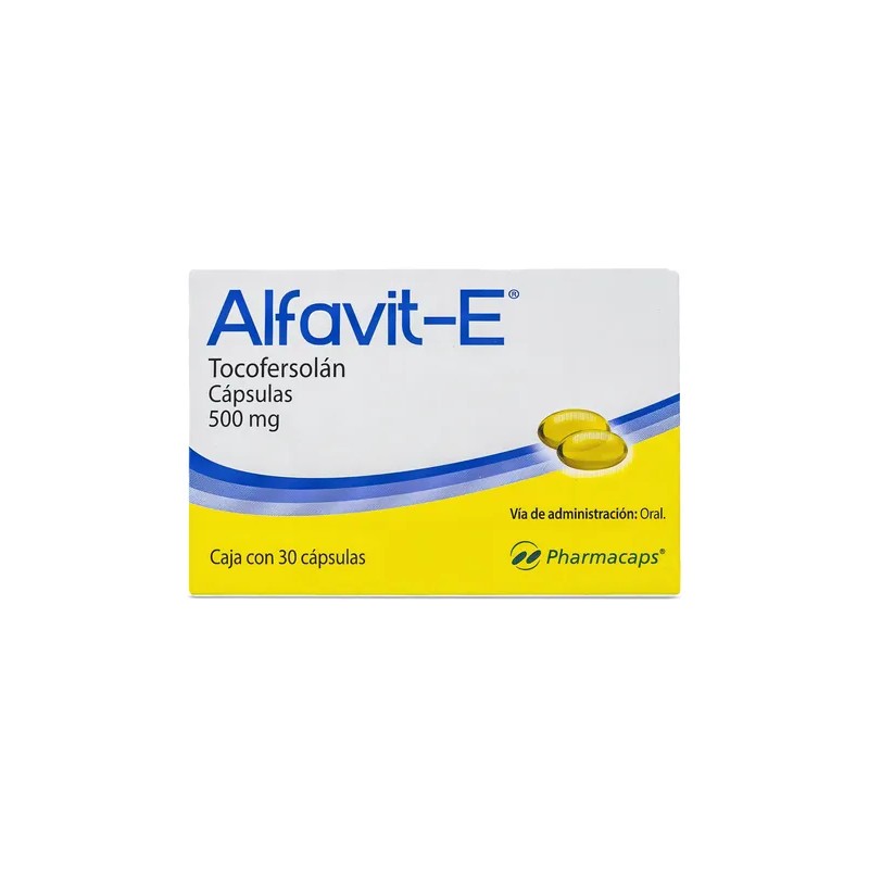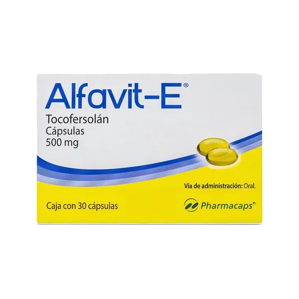 Alfavit - E Tocofersolán Vitamina E 500mg C/30 Cap es un producto de la marca PHARMACAPS. Este producto es rico en vitamina E, proveniente del germen de trigo. Esta vitamina es conocida por su capacidad para neutralizar los "radicales libres", lo que ayuda a prevenir el envejecimiento prematuro. Además, la vitamina E es esencial para la salud de los músculos, las paredes de los vasos sanguíneos y el músculo cardiaco, ya que impide la destrucción de la vitamina A en el organismo.