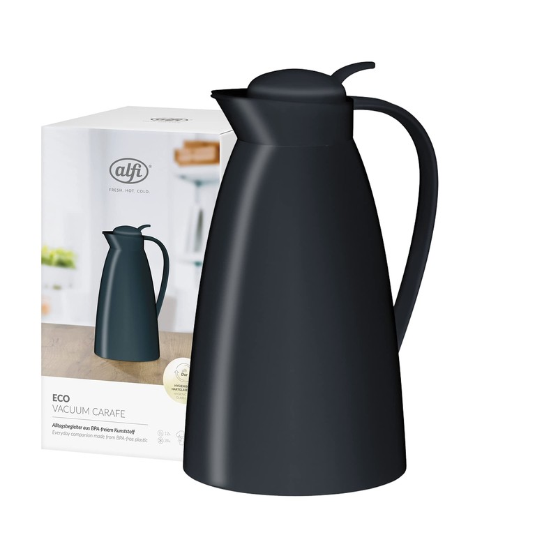 alfi 0825.020.100 vacuum jug Eco, frosted plastic black 1.0 l, 12 hours hot, 24 hours cold