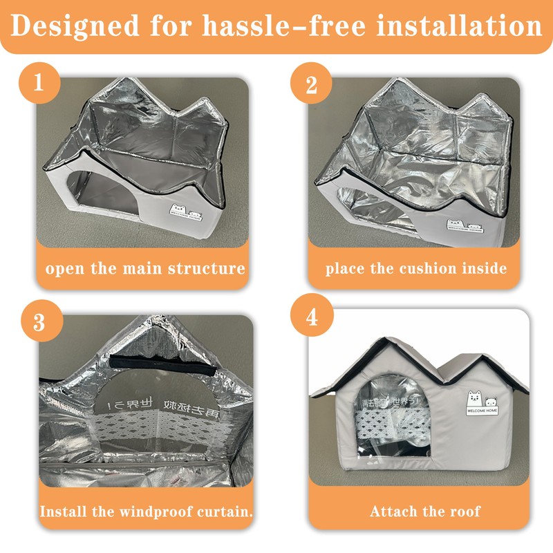 Provide year-round comfort with this insulated cat house featuring a charming dual-roof cottage design. Crafted with durable 600D Oxford fabric exterior, the interior integrates thermal aluminum foil to regulate temperaturereflecting body heat in winter and blocking external heat in summer. Generously filled with hypoallergenic PP cotton for cloud-like support that resists flattening. Includes a low-entry door for privacy, removable machine-washable cushion, and non-slip base. Ideal for indoor cats seeking warmth or security.