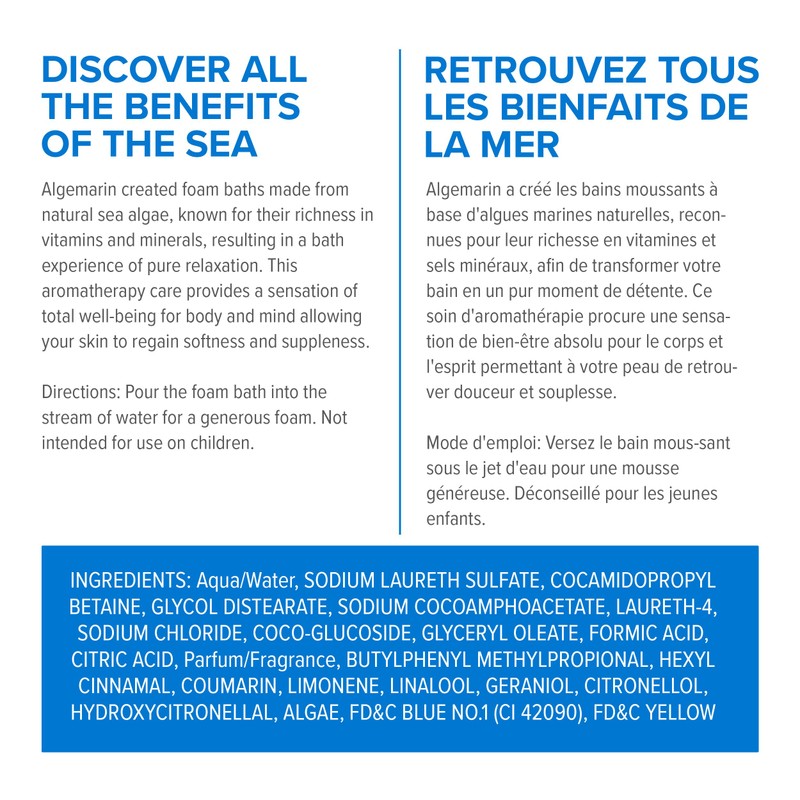 • REFRESHINGLY CLEAN SKIN: Algemarin head to toe relaxing shower gel is especially created with the precious ingredients of the sea.