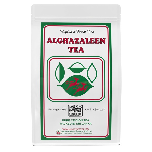 Alghazaleen Tea White Collection, 14oz (400g) Bag,100% Pure Ceylon Black Tea (FBOPF), Loose Leaf, Packed in Sri Lanka