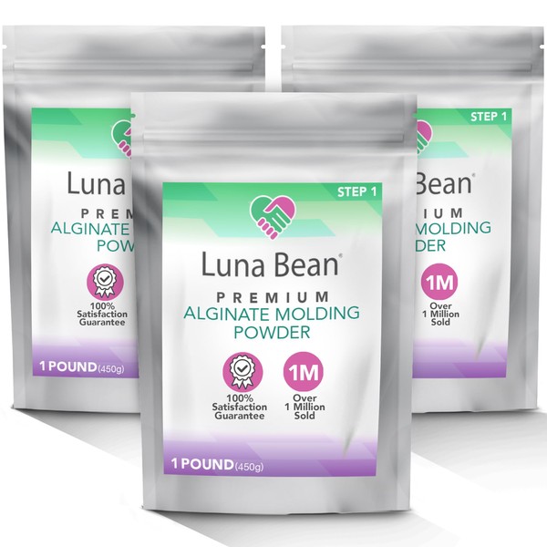 3lbs of Luna Bean brand superior quality molding powder Included: 3 - 1 lb [454g] foil bags of our superior quality chromatic (color changing) alginate. Basic mixing directions are included on the bags. A dust free, color changing formula. The mixture changes from lavender to pink while mixing and turns off- white when it is ready for molding. If purchasing along with our casting stone: For infants & toddlers, you will typically need even amounts of alginate and casting stone. For older children and adults, you will typically need double the amount of stone.