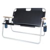 - Item Weight 10; Seats 2 adults or 3 children comfortably; Rust proof aluminum frame; Wood arm rests; Two removable drink holders that attach to arm rests; Two zip on convenient storage bags; Includes shoulder strap for easy carrying; Fold to 4.5 inches high for easy storage; Light weight at only 10 pounds; Weight capacity is 500 pounds