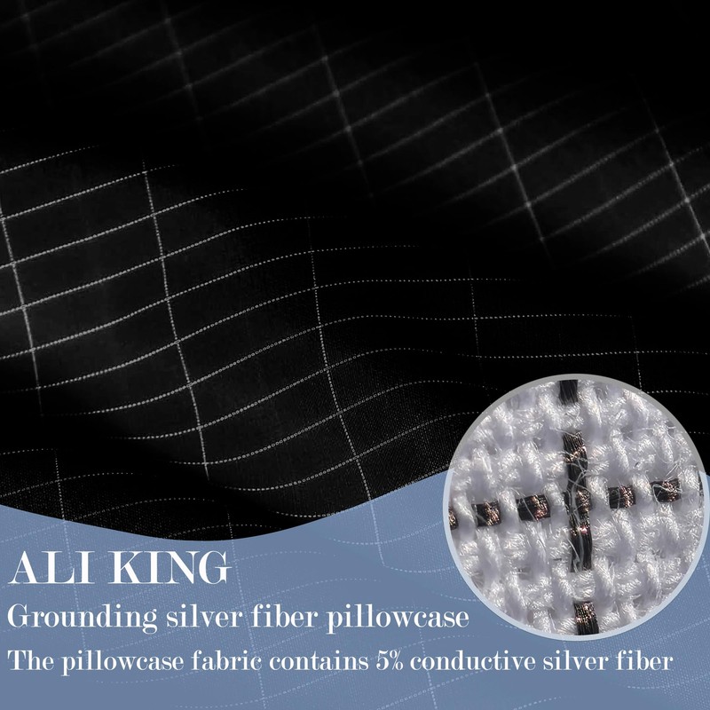Ali King Grounding Pillowcase, 5% Conductive Silver + 95% Soft Cotton Earth Grounding Pillow Cases with Grounding Cord for Improve Sleep (Black, King (20x36inches))