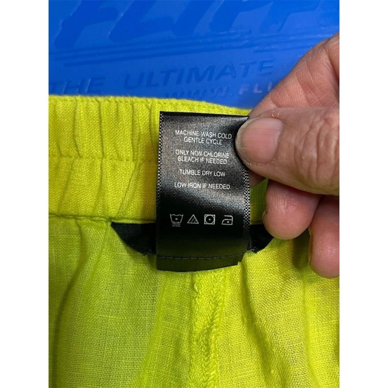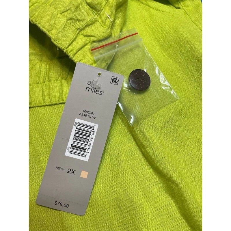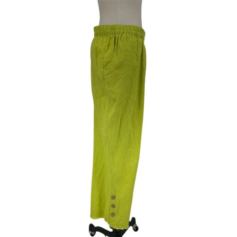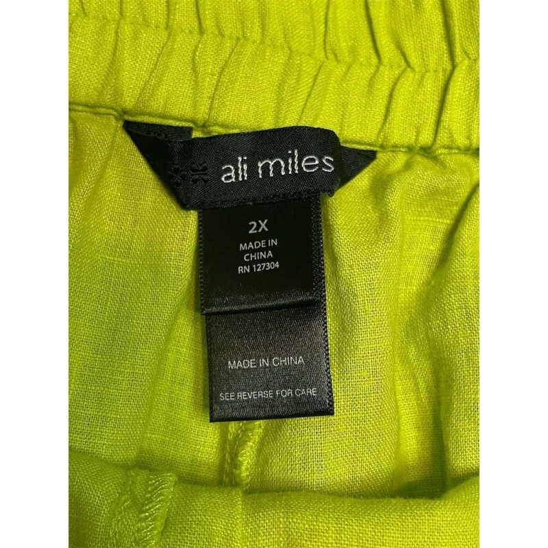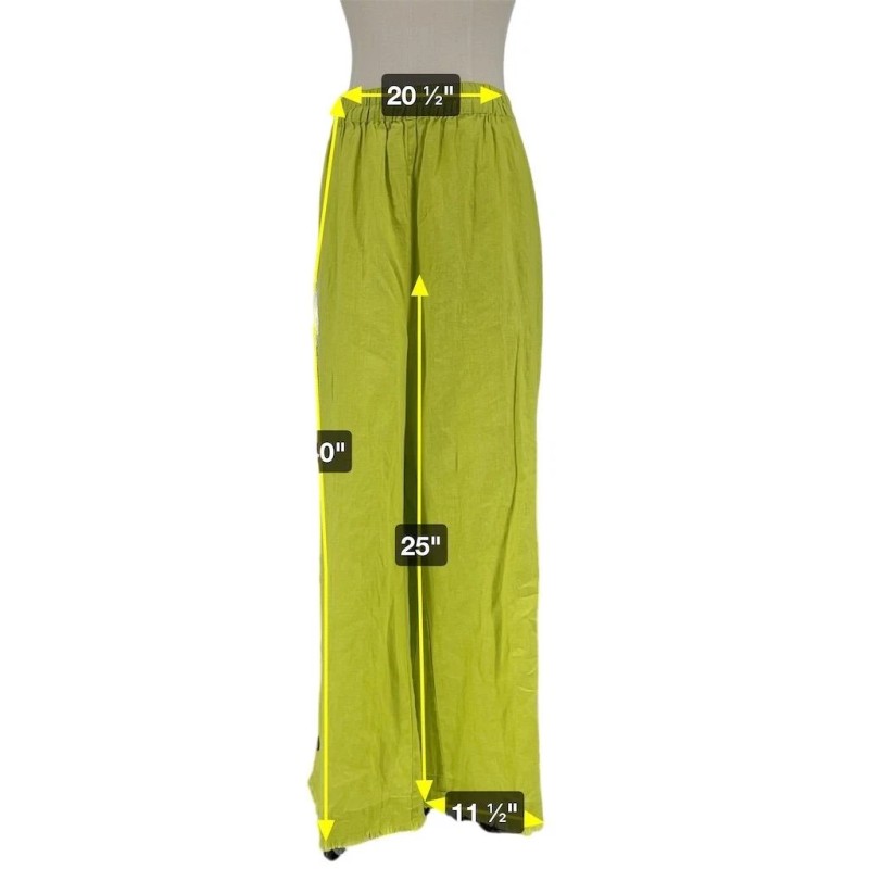 Ali Miles NWT Ali Miles 2X Linen Lime Green Fringe Wide-Leg Pants Elastic Waist Plus