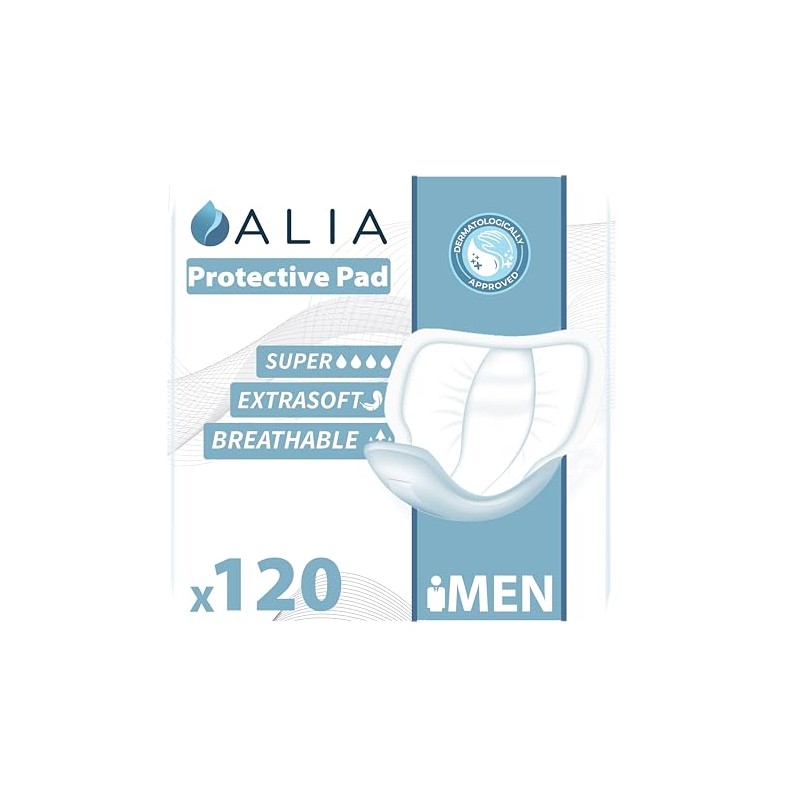 ALIA 120 x ALIA Men Super Incontinence Pads | Super Absorbent Protectors | for Men of All Ages | Discrete, Soft Dermatologically Tested and Odour Free | 6 Packs of 20