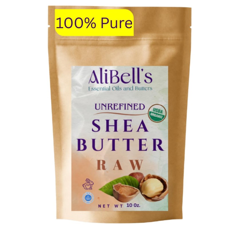 AliBell's Shea Butter Raw Organic - 10 oz Unrefined Shea Butter - Moisturizer for Dry Skin and Hair, Hydrates for a Radiant Glow, Beneficial for Pets and Baby