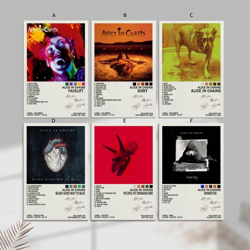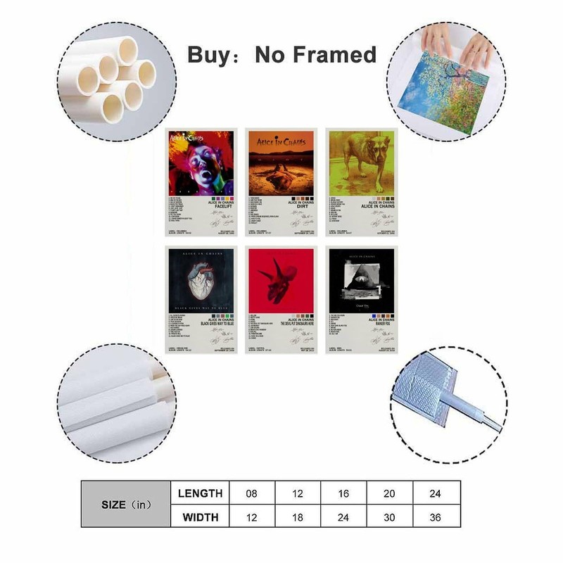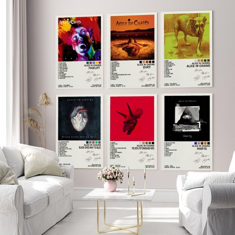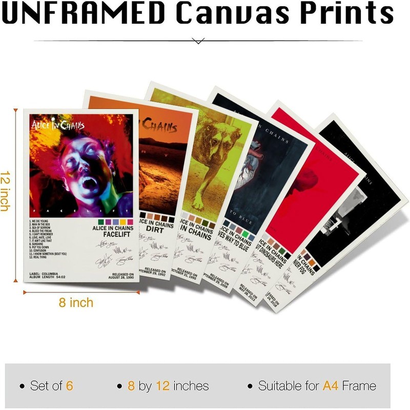 Alice in Chains Poster (Set of 6) Album Cover Signed Limited Edition Posters Canvas Music for Bedroom Wall Art Decor Posters & Prints 08x12inch(20x30cm) Style-2