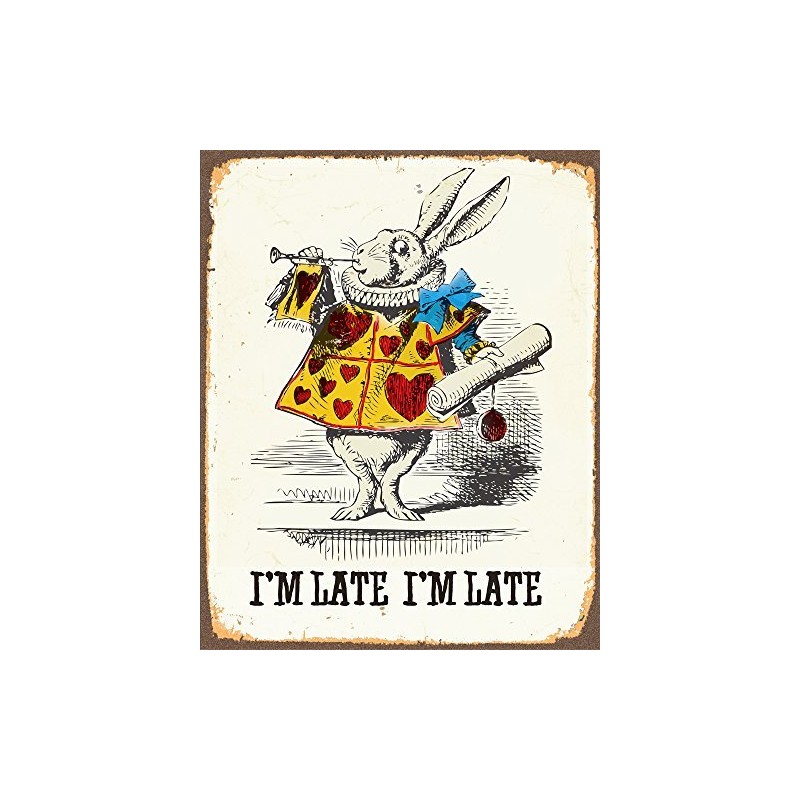 Alice in Wonderland White Rabbit No Wonder I'm Late Metal Wall Sign Plaque Vintage Retro Poster Art Picture Print