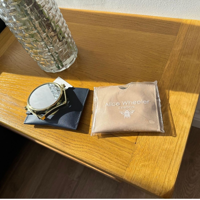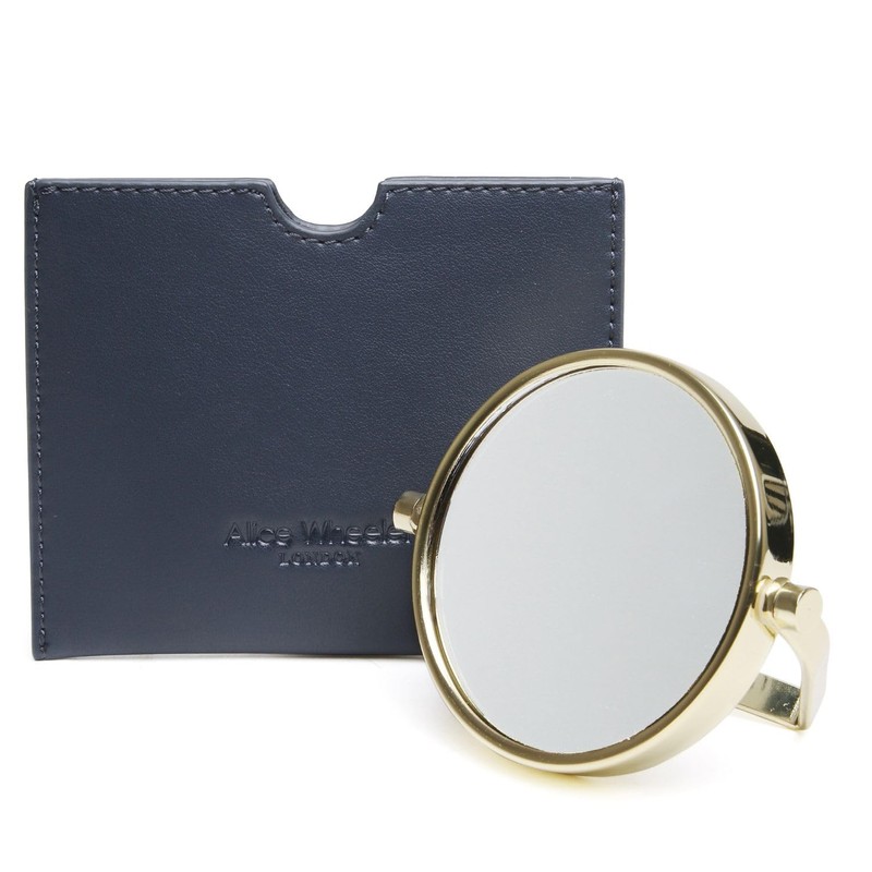 Alice Wheeler Venice Kompaktspiegel, 7,5 cm doppelte Vergrößerung, veganes Ledertasche, gold (dunkelblau)