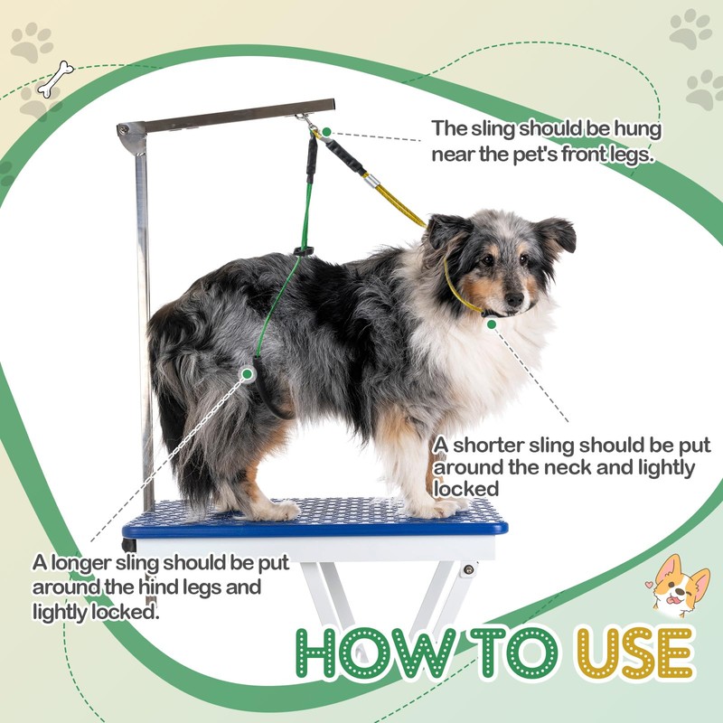 - A Good Helper: double tie dog grooming loop is great for pet grooming, bathing, and styling, will prevent the dog tail from being crushed when the pet sits, reducing discomfort or injury, also provide fatigue and stress relief for older animals, and help control overexcited pets