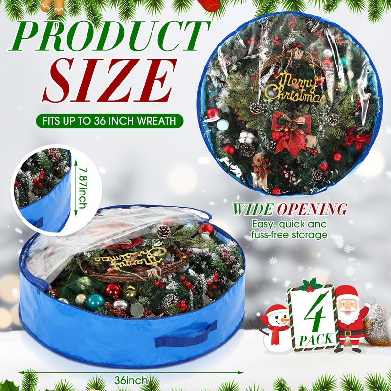 - Practical and Ample Storage: you will receive 4 pieces of wreath storage bags in blue color, with each measuring approximately 36 x 36 x 7.8 inches, are designed to accommodate most Christmas wreaths, along with other decorations, green plants, and seasonal items, ensuring that you have plenty of storage at your disposal