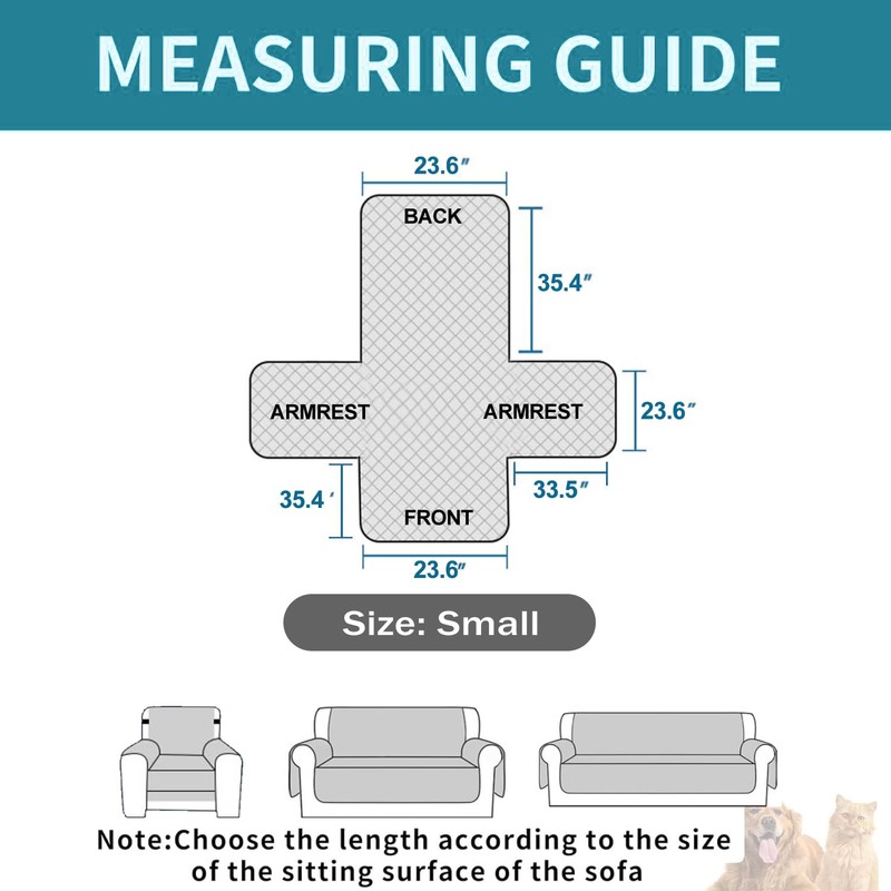 - Multi-size Options: We offer couch covers for sofa and chairs of all sizes: Small chair covers armchair slipcovers (23" Seat Width), Medium loveseat covers (45"), Medium-XL love seat couch covers (54"), Large couch covers for 3 cushion couch sofa (68"), X-Large sofa covers for 3 cushion couch (78"), and XX-Large oversized couch cover (90"). Please measure your sofa seater width using the detailed guide in images