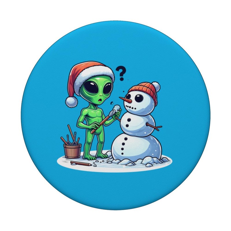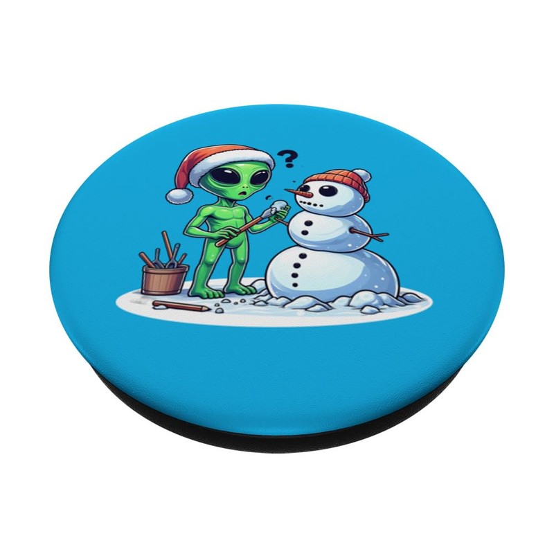Alien Building Snowman in Santa Hat PopSockets Swappable PopGrip