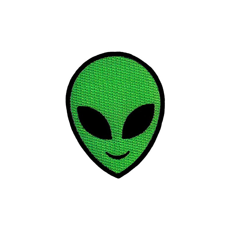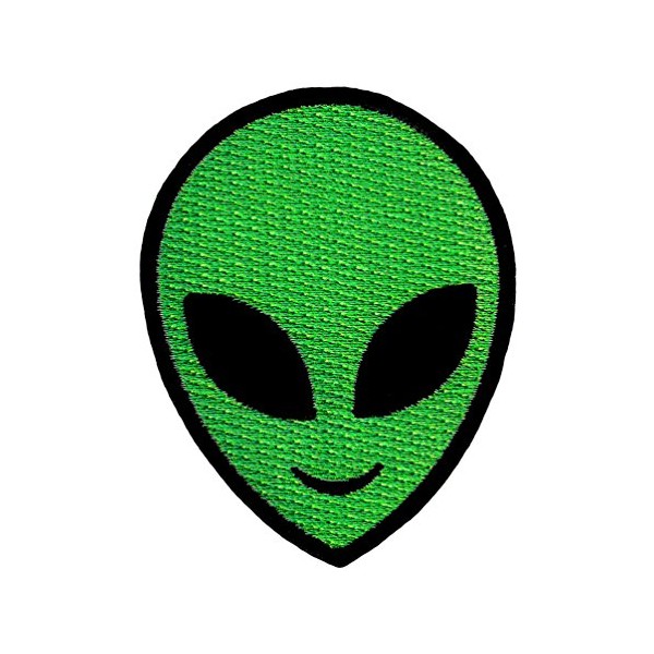 This brand new embroidered patch shows a smiling UFO alien from another planet made with bright green thread. Heat-seal backing allows buyer to iron this patch onto virtually any fabric.
