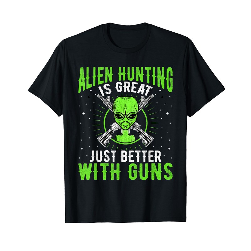 - Alien Hunting is great just better with guns Shirt. Fun alien hunter design for all the alien enthusiasts, graphic with aliens and UFOs in space. Whether you’re an alien hunter a UFO fan or a starship lover, this apparel is for men women, girls & boys.