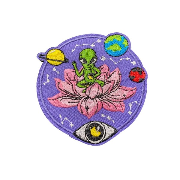 Alien Lotus Flower Space Patch, Iron On/Sew On