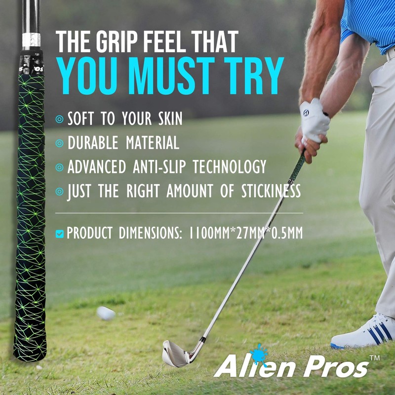 - THE HASSLE OF REGRIPPING IS FINALLY OVER: With Alien Pros Golf Grip Wrapping Tapes, you can simply peel, wrap and seal, no solvent or kit needed. You can regrip anytime anywhere you want. No more shop visiting needed. In less than a minute, you will have a brand new, functional golf club grip with the style of your choice.