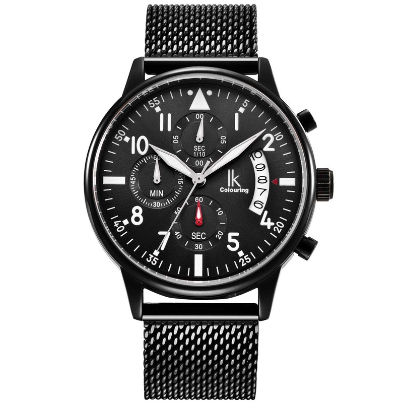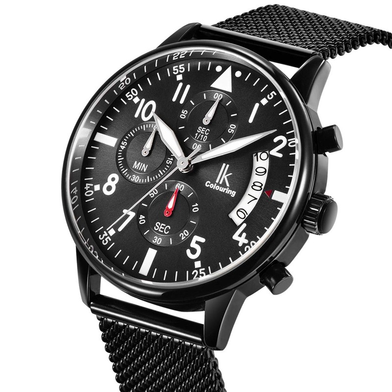 Alienwork IK Chronograph Men's Women's Watch with Mesh Strap, black