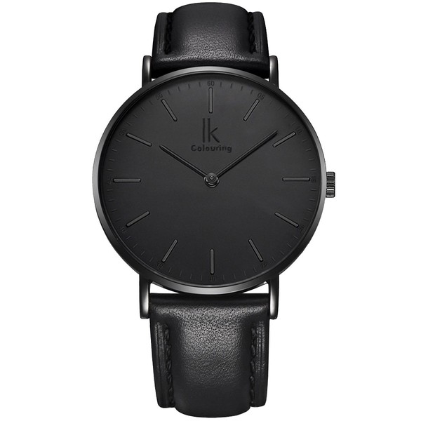 Alienwork IK Men's / Women's Ultra Flat Slim Watch with Leather Strap
