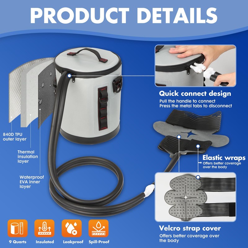 - 【Comfortable & Leak-proof】 Experience super comfort and leak-proof protection with our premium compression cold therapy pads. The cold therapy pads, tubes and connectors are made of composite materials, leak-proof, and can provide targeted pain relief.