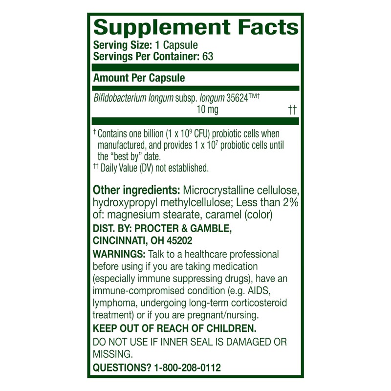 . One capsule a day naturally helps to support your digestive balance.* - SUPPLEMENT YOUR DIGESTIVE SYSTEM WITH HEALTHY BACTERIA*: Align Probiotics contain guaranteed potency and levels of live probiotic CFUs in each dose. Each lot is DNA tested to ensure the quality of our unique strain, Bifidobacterium 35624TM