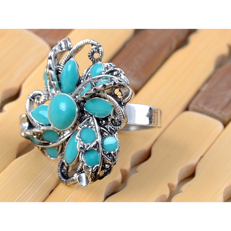 - Unique Design: Featuring an abstract floral flower design with faux turquoise stones, this ring is a standout piece for your collection.