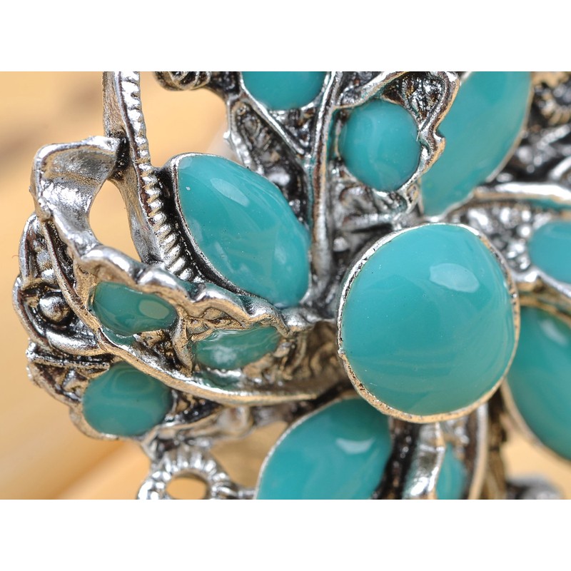 Alilang Adjustable Silvery Tone Faux Turquoise Stone Abstract Floral Flower Ring