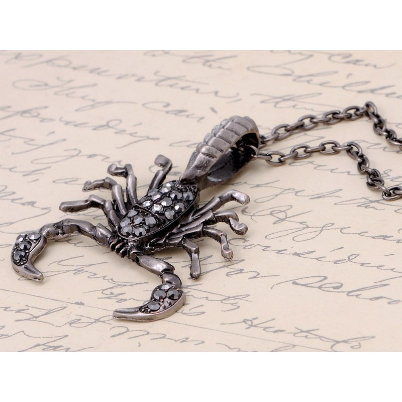 Alilang Antique Silvery Tone Grey Rhinestones Scorpio Scorpion Pendant Necklace