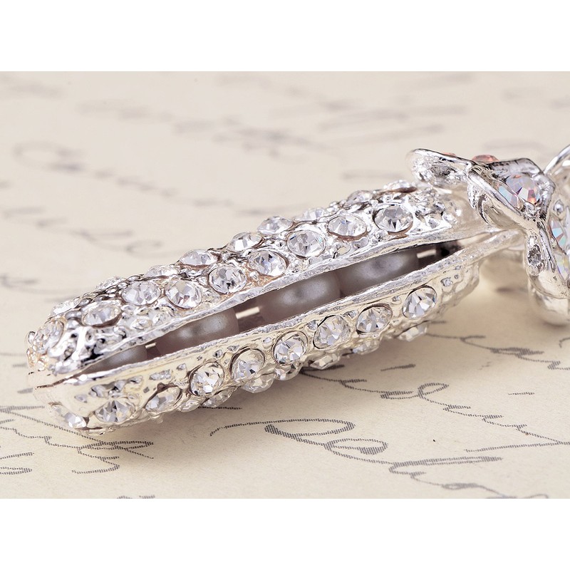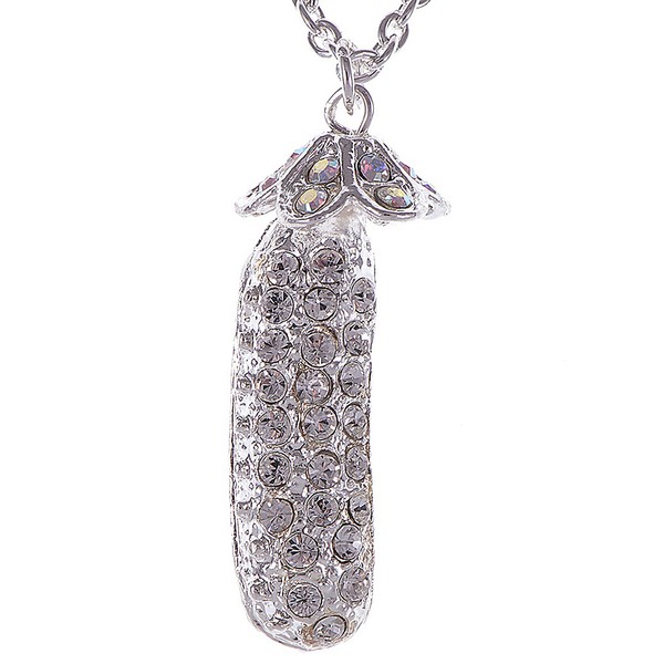 Alilang Clear Crystal Rhinestone Eggplant Faux Pearl Peas Pod Pendant Necklace