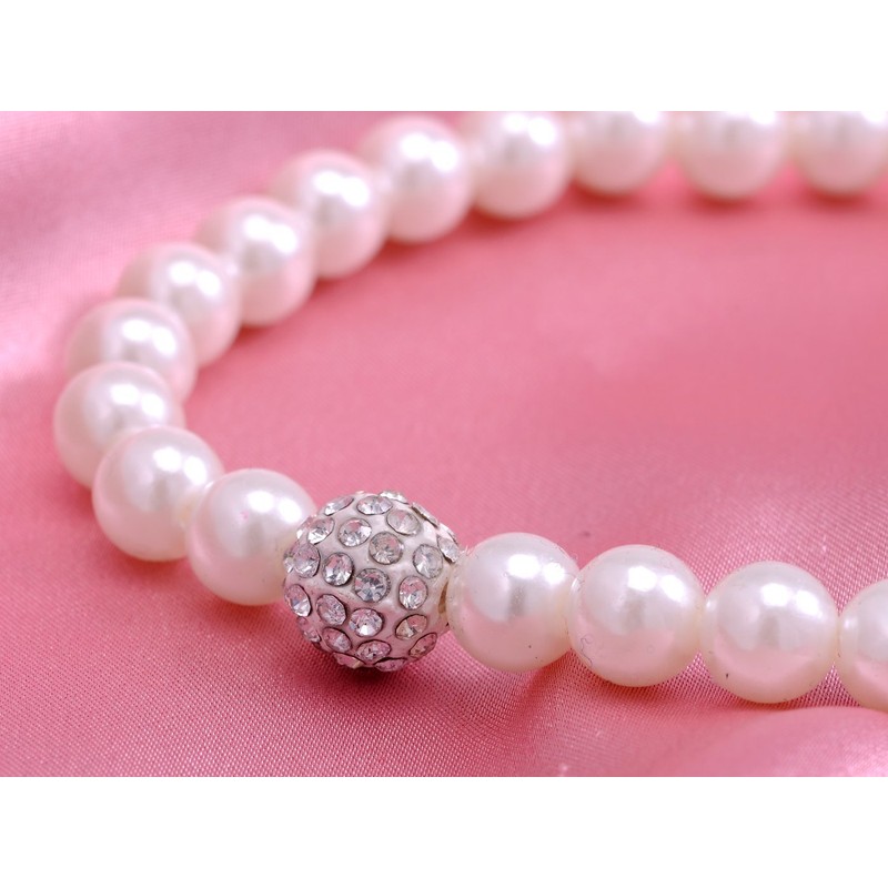 - Features - these stunning silvery tone 3 piece jewelry set made of faux pearls. a 7 mm-8 mm faux pearl necklace & bracelet with a round cluster clear crystal rhinestones ball, a pair of 10 mm pearls stud earrings. This necklace has a adjustable chain to fit your size.
