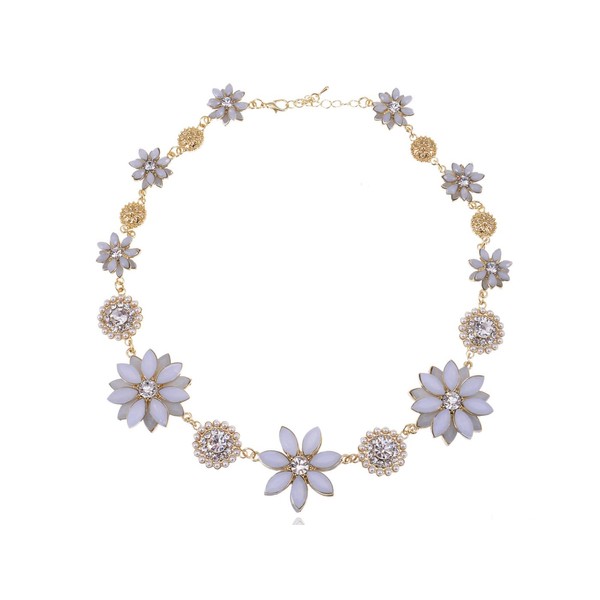 Alilang Golden Tone White Flower Intricate Faux Pearl Rhinestone Accented Necklace