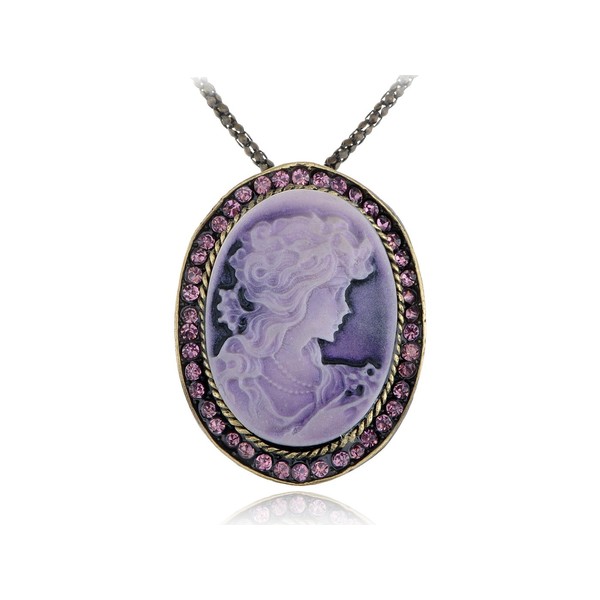 Alilang Purple Amethyst Crystal Rhinestone Cameo Lady Maiden Pendant Necklace