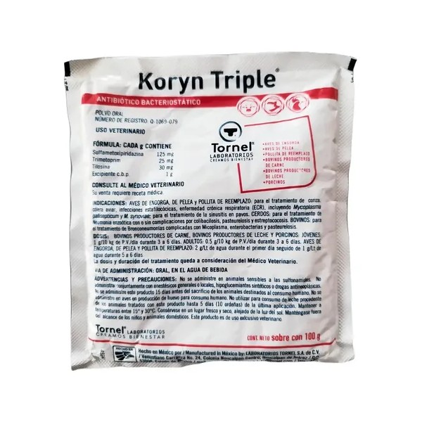 Alimento Aves Koryn Triple 100g - Antibiotico basteriostatico
