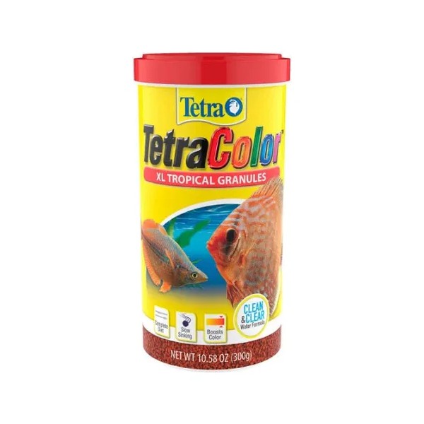 Alimento Tetra Color Granulado 300 Gr Nueva Formula XL es ideal para resaltar los colores vibrantes de peces tropicales de mayor tamaño, como el disco y el pez ángel. Los gránulos de hundimiento lento están formulados para peces que se alimentan en diferentes niveles del acuario, desde el medio hasta el fondo. Enriquecido con vitamina C y ProCare de TetraMin, este alimento promueve la salud y el bienestar de tus peces, a la vez que intensifica su coloración natural.