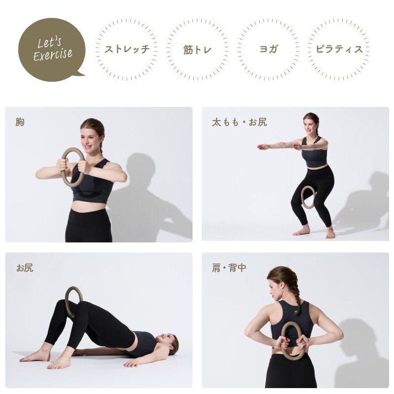 • (Elastic Ring Effectively Stimulates Muscles) With simple movements such as pushing and pulling of the ring can effectively stimulate those concerned areas. The moderate elasticity of the ring allows you to put a firm load on your muscles. Can be used for a wide range of exercises from muscle training, stretching, and yoga