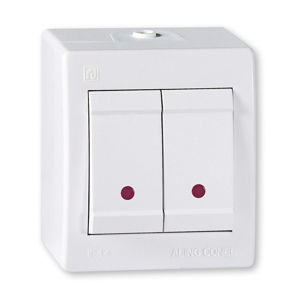 ALING-CONEL Surface-Mounted Series Switch with Glow Lamp (Rocker Switch) 10AX/250V~/IP 44 - White