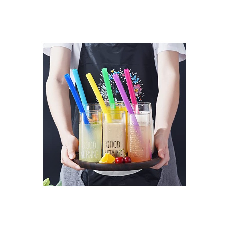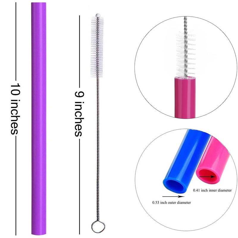 - 6 pcs 10” long, 0.41” inner dia / 0.53” outside dia large straws, 1 cleaning brush