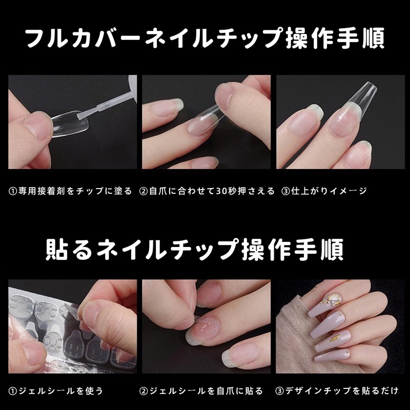 - Arrange freely in 2 ways: The false nail tips are completely glued with glue, so they can be used for a long time. Gel seals can be easily replaced by simply sticking and peeling. You can freely design your nail according to your mood and occasion