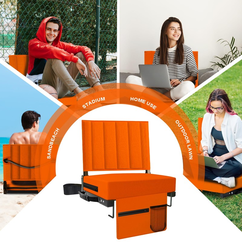 Aliphon Stadium Seat for Bleachers with Back Support and Cushion, Bleacher Seats with Shoulder Strap and Cup Holder, Padded Portable Folding Comfort Stadium Chair, for Sports Events, Orange (1pcs)