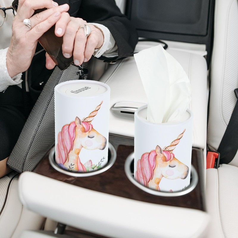 Alipis Car Tissue Holder Car Tissues Boxes Cylinder Car Tissue Holder,Round Tissue Paper Container Cartoon Unicorn Travel Tissues Packs,3Pc Car Napkin Holder