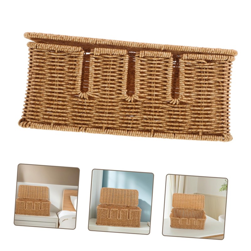 Alipis Imitation Rattan Organizer with Open Slots for Efficient Cable Storage Enhance Workspace Aesthetics and Optimize Desk Space
