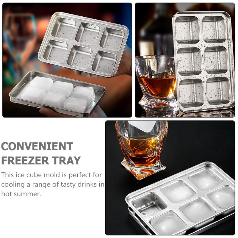 - Efficient Ice Cube Making: Designed with 6 slots, this stainless steel ice tray allows quick and easy release of ice cubes without cracking, making it ideal for freezing drinks, fruit, or pudding in summer.