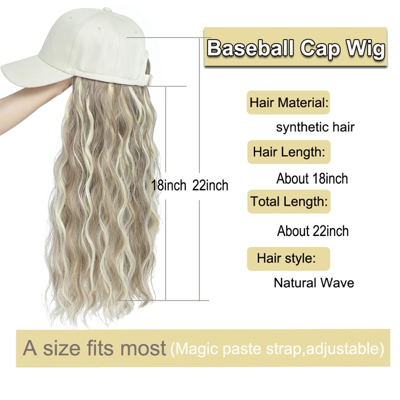 - Specification and Material: Baseball Hat with hair is made of heat resistant synthetic fiber and Baseball Cap. The cap is breathable. Hat Wig With Natural Wave Hair Extensions is sewed well in the hat by professional workers. The hair is super soft