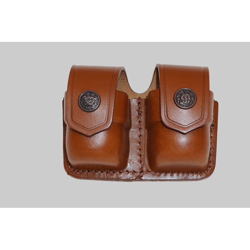 - Handmade Leather Double Speedloader Pouch with retention flaps. Speedloader case holds one speedloader. Flap with snap keeps speedloader securely in place. For 5-6 & 7 shot 38 Special and .357 Magnum and speedloaders.