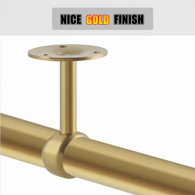 - 【Beautiful Finish Design】The curtain rod holder bracket is finished by dazzling and gorgeous brushed golden; The shiny look makes it a focal point everywhere, and is also perfect for a variety of bathroom finishing styles.